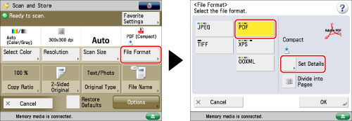 You cannot set the Encrypted PDF mode if [Format PDF to PDF/A] is set to 'On'. (See "Formatting PDF Files to PDF/A.")