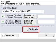 * Appears only if you select [Acrobat 9.0 or Equivalent] in [256-bit AES Settings for Encrypted PDF] in [Function Settings] (Settings/Registration). (See "Changing the PDF Encryption Level from Acrobat 10.0 or Equivalent to Acrobat 9.0 or Equivalent.")