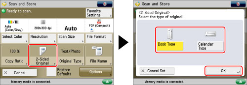 IIf you want to scan each side of the 2-sided originals placed on the platen glass, specify [Job Build] settings. (See "Job Build.")