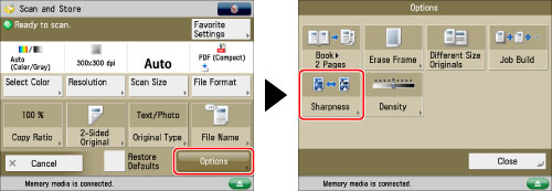 You can adjust the sharpness to scan text and lines with a sharper contrast. You can also reduce the sharpness for the half-tone dots of printed photos, etc. to scan with a softer image.