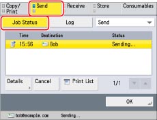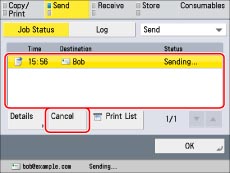 The cancelled job appears as <NG> (No Good) on the Log screen.