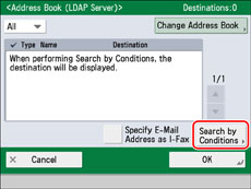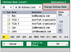 [Change Address Book] appears only if you register both the Remote Address Book and LDAP server. If only the LDAP server is registered on the machine, [To LDAP Server] is displayed.