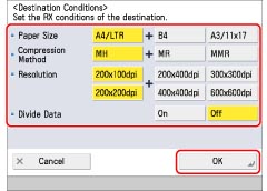 Set the destination conditions according to the specifications of the recipient's machine. If you set conditions that the recipient's machine does not support, a transmission error may occur.