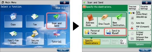 [Send to Myself] appears only if you register a user's e-mail address when you are using authentication by SSO-H.