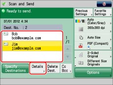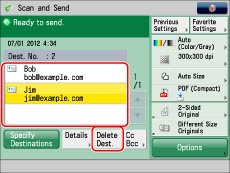 If you want to change a destination after scanning is complete, do it from the Status Monitor/Cancel screen. (See "Operations from Send Screen.")