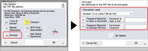 * Appears only if you select [Acrobat 9.0 or Equivalent] in [256-bit AES Settings for Encrypted PDF] in [Function Settings] (Settings/Registration). (See "Changing the PDF Encryption Level from Acrobat 10.0 or Equivalent to Acrobat 9.0 or Equivalent.")