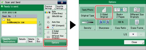 Specify the destination → press [Options] → [2-Sided Original].