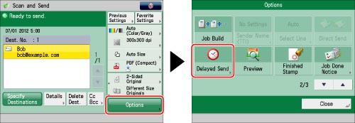 The number of delayed send jobs you can reserve may also be reduced if other jobs with no Delayed Send settings are being processed, or if there are other factors affecting the specified destinations.