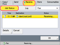 Displays detailed information for the selected job. Check the detailed information → press [OK] to return to the Receive screen.