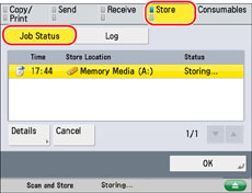 Displays detailed information for the selected job. Check the detailed information → press [OK] to return to the Store screen.