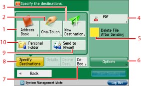 Press to specify your own e-mail address as the destination. The administrator can restrict general users to send e-mail only to their addresses. (See "Setting Limited Destination for Sending E-Mail.")