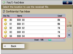 If the capacity of the Fax/I-Fax Inbox is reached, you cannot store any more documents in inboxes. The capacities are indicated below.