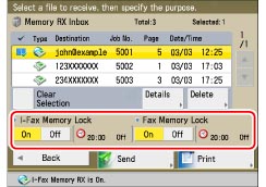 If you have set [Memory Lock Start Time]/[Memory Lock End Time] in [Set Fax/I-Fax Inbox], the following is displayed.(See "Specifying the Fax/I-Fax Inbox Settings.")