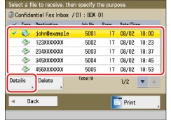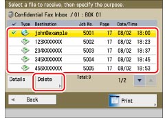 Checking the Detailed Information for/Deleting a File in a Confidential Fax Inbox