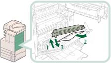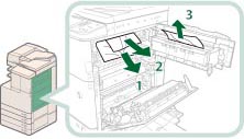 2. Remove any jammed paper inside the lower right cover of the main unit. |