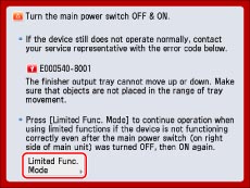 If you set Limited Functions Mode to 'On' from the Service Call Message screen, [Limited Functions Mode] in [Management Settings] (Settings/Registration) is also set to 'On'. (See "Limiting Functions.")