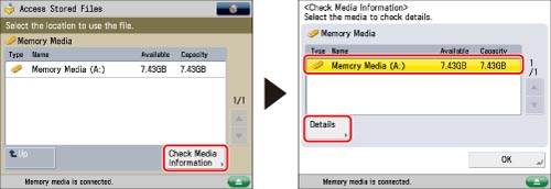 Press [Check Media Information] → select the desired memory media→ press [Details].