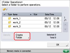 Select the desired memory media → select the directory where you want to create the new folder → press [Folder Operations].