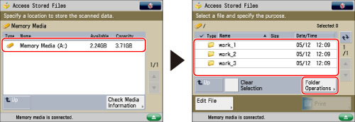 Select the desired memory media → select the desired folder level → press [Folder Operations].