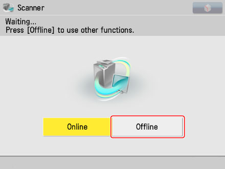 After scanning, switch the scanner function to "offline" in order to use the copy, fax, and other functions.