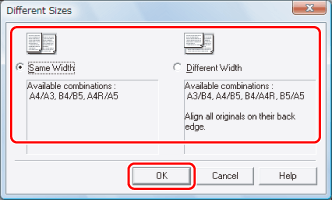 For sizes such as A3 and A4, where the longer side of the smaller original is the same size as the shorter side of the larger original, select [Same Width].
