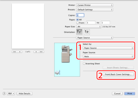 When you want to print on a specific type of paper, specify the paper source containing the paper, or the paper type.