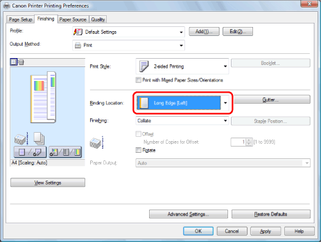The default setting for [Print Style] is [2-sided Printing]. You can also change the default setting to [1-sided Printing]. For instructions on changing the default settings, see "Configuring the Default Print Settings."