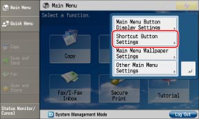 This section describes how to specify the display settings for the shortcut buttons using the on the top right of the screen.