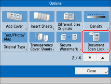 (To use the Document Scan Lock function) The Document Scan Lock Kit is activated.