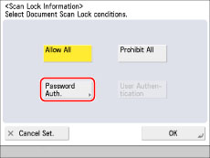 Select the scan lock information condition. As an example, [Password Auth.] is selected.
