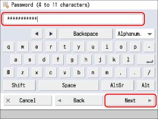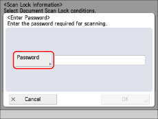 Scanning stops, and the password authentication screen appears on the touch panel display.