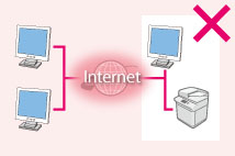 If a global IP address is assigned to a printer/multifunction machine, you can create a network environment to reduce the risk of unauthorized access by installing security software, such as a firewall that prevents access from the external networks. If you want to assign a global IP address to and use a printer/multifunction machine, contact your network administrator.