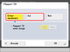 Pour plus d'informations sur les rapports d'émission (TX)/rapports d'erreur, voir "RAPPORT TX".
