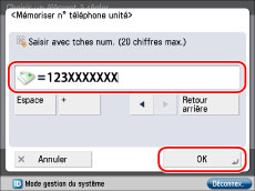 Permet d'insérer un indicatif de pays. Appuyer sur [+] après l'indicatif de pays et avant le numéro de télécopieur.