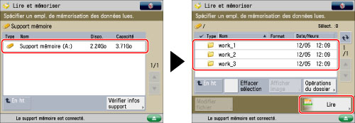 Appuyer sur [Lire et mémoriser] → [Support mémoire].