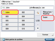 Sélectionner le bouton de composition 1 touche à supprimer → appuyer sur [Suppr.].