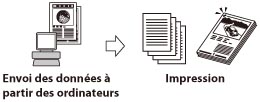 Cette machine est utilisable comme imprimante réseau à grande vitesse. Différents modes d'impression sont disponibles, tels que l'impression recto verso et l'alignement des pages.
