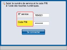 Si [Délai réinitialisation auto.] est défini, même si l'on oublie de se connecter une fois la tâche terminée, l'écran de saisie du numéro de service et du PIN s'affiche automatiquement après un certain temps. (Voir "Délai de réinitialisation automatique".)