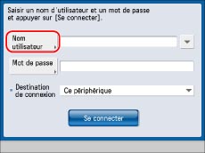 Pour plus d'informations sur le nom d'utilisateur tel qu'on l'emploie dans le cadre du système d'authentification utilisateur Server Authentication de SSO-H (notamment la combinaison "Server Authentication + Local Device Authentication"), prendre contact avec l'administrateur réseau (NetworkAdmin).
