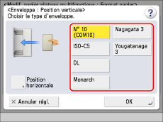 Si le format mémorisé dans [Mémoriser régl. par défaut plat. multifctns], sous [Préférences] (Réglages/Enregistrement), n'est pas un format d'enveloppe, définir [Mémoriser régl. par défaut plat. multifctns] sur "Non".
