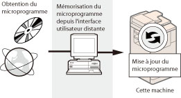 Pour installer la dernière version du microprogramme de la machine, utiliser la fonction "Enregistrer/Mettre à jour logiciel" depuis l'interface utilisateur distante.