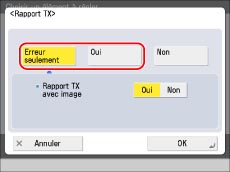 Si l'on souhaite faire figurer une partie du document envoyé dans le Rapport d'émission (TX), régler <Rapport TX avec image> sur [Oui].