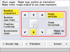 Si le même emplacement d'impression du numéro est sélectionné pour n'importe quelle combinaison de deux modes parmi les suivants : [Numérotation jeux copies], [Filigrane] ou [Date d'impression], un message demandant la confirmation s'affiche lorsque l'on appuie sur