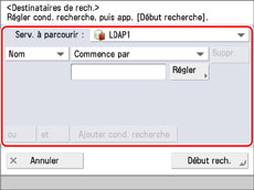 Si l'on appuie sur [Début rech.] sans définir de critères de recherche, toutes les adresses mémorisées sur le serveur LDAP sont affichées.