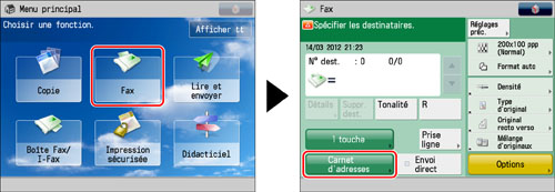 pour procéder à l'envoi à partir de l'écran Carnet d'adresses. |