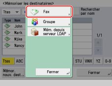 Appuyer sur [Fax] → [Carnet d'adresses].