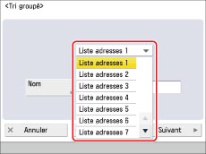 Lors de la définition d'une adresse de groupe, il n'est possible de sélectionner que des destinataires enregistrés dans une même liste d'adresses.