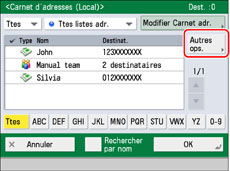 Pour sélectionner plusieurs destinataires, sélectionner la liste des adresses de destinataire → appuyer sur [OK]. Si [Gérer n° d'accès au carnet d'adresses] est réglé sur "Oui", appuyer sur [Numéro d'accès].