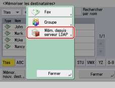 Il peut être nécessaire de configurer les serveurs LDAP à l'avance, selon l'environnement réseau. Pour plus d'informations sur le réglage LDAP, voir "Mémorisation d'un serveur LDAP".