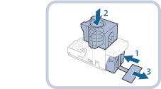 1. Remettre en place délicatement la réserve d'agrafes dans le module de finition et appuyer fermement jusqu'à enclenchement. |